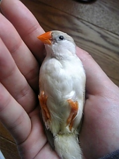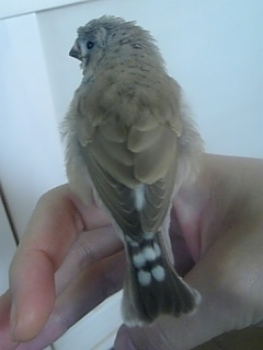 男の子の場合なのですが、チークの綺麗なオレンジ色の羽は1枚づつ出現してたので、観察していてみて下さい。楽しみですネ。ユズの変化を1週間単位で貼って行きます。まだカメラが無くて携帯のショボい写真でスイマセン。この時と今とでは嘴の色も体の色も違うように思います。嘴は今の方が濃いし、体色は今の方が鹿の子を除いて少し淡いです。気のせいかな。