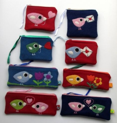 小鳥デザインのドアストッパー&羊毛ししゅう小物
