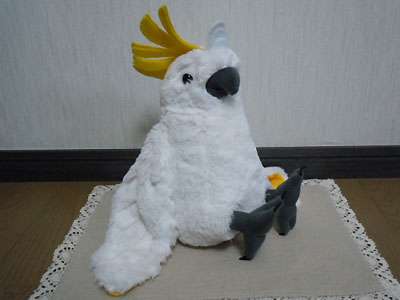 白色オウムのぬいぐるみが入荷しました。こちらと合わせて品切れだった丸くて可愛いキバタンの方も再入荷しました。