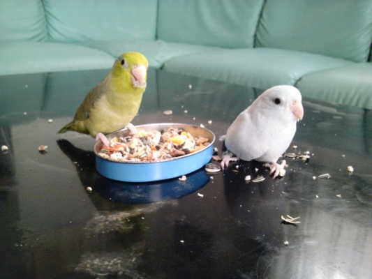 マメルリハインコの繁殖は初めてです。まだ1歳未満なので繁殖は考えていなかったのでケージは別々でした。