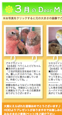 ケージなど飼育用品を製造販売しているHOEIさんの 2015年「3月のDear My Family大賞」をいただきました!!