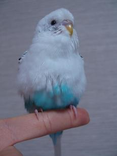 お相手募集中の子:blueGreen色WHITEフェイス(正式色名未確認)嘴の黒色はもう抜けました。母親よりだいぶ早く抜けた気がします。