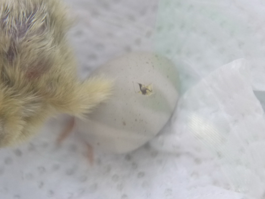 もう一つ嘴打ちして頑張ってる卵があるのですが、ちょっと時間かかってるし尖ってる方に穴が開いてるのでどうかな・・・頑張って欲しいです!