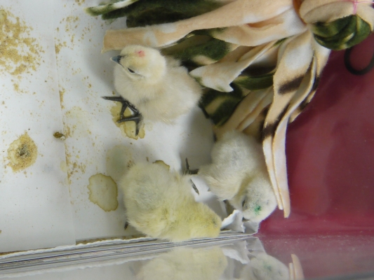 >でも、出ベソみたいになってるんだけど、大丈夫なのか心配・・・まだ足取りもおぼつか無くて寝てばっかりだし餌も突く程度だし・・・