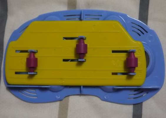 ウズラの卵座は2段になってて、下のフラットなプレートがローラーによって左右に動いて卵が転がるようになってます(写真2枚目参照。紫のローラーが回って黄色いプレートを動かします。青いのが7つ穴の開いている卵座)