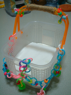 これでケージの中や放鳥の時にトイレを決まった場所で出来るようになれば、お掃除も容器に溜まったフンを捨てるだけですし、ケージの糞きり網は要らなくなりますね。