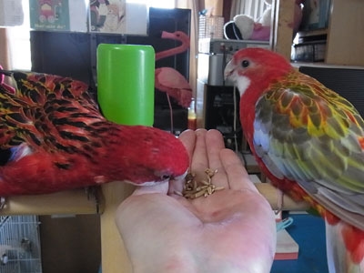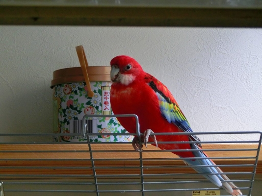 通常ショップでは あんたはレッドさんねって話しかけてもらえていたのに 我が家では野鳥たちに逃げられて犬のクーちゃんを呼ぶようになっています。