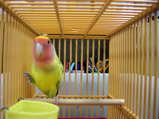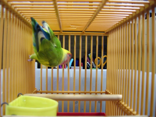 静岡大学片山寮(静岡市駿河区大谷836)のベランダで小鳥を見つけた片山寮生からコザクラインコを預かって保護中です。