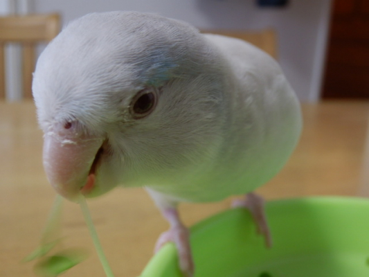 (一緒に飼っているコザクラでさえとても大きなインコに思えたほどです。)