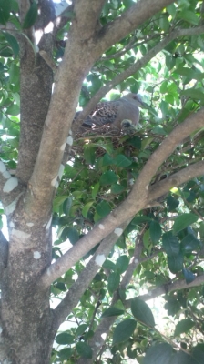 この木にキジバトさんが居ます 卵は外に捨てたのでしょうか・・・ 一昨日 家族になりました^^(オカメ)