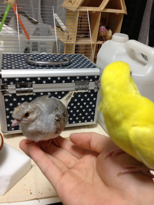 あ、でも私も小さいですが噛む力が強いことで有名?なコザクラ(柚子)とボタン(雪)を後ろから掴んだり普通にしますよ〜(もちろん、声をかけてビックリさせないように)