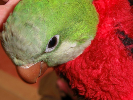 今は 飛び回って火を吹くように口あけてレッドのかごの上にいますので