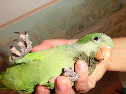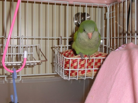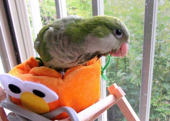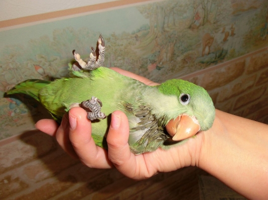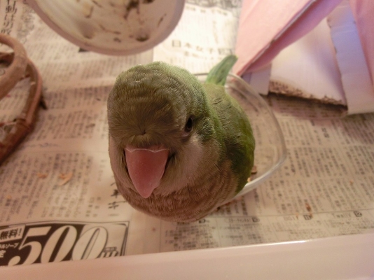 このオキナインコが反抗期を向かえ噛み付きキョロちゃんになるのかと思うと とても恐ろしい日々私の袖の中で寝ていて