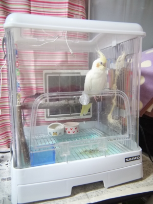 昼間の人間不在時や病気の時は、上記にケージの前面をあけておいてあげると、鳥が寒いと感じたときには奥へ、暑ければ前へ移動出来ますので便利です。