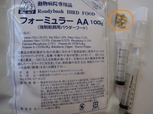○で囲んである粉(かなり細かい)をお湯で溶いて鳥さんに