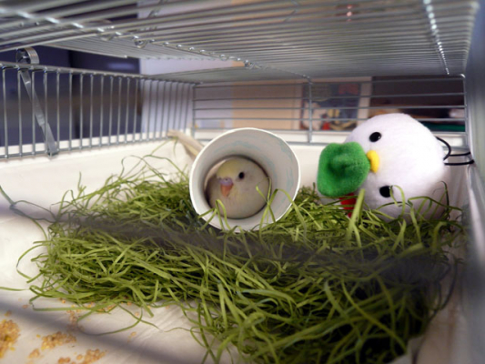 うちのチェキ(セキセイ)、トイレットペーパーの芯 嫌いなんですよ〜。怖がって、ばたばたしちゃいます(+o+)