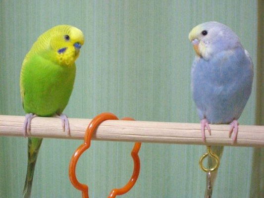 緑のインコちゃんと黄色のインコちゃんの