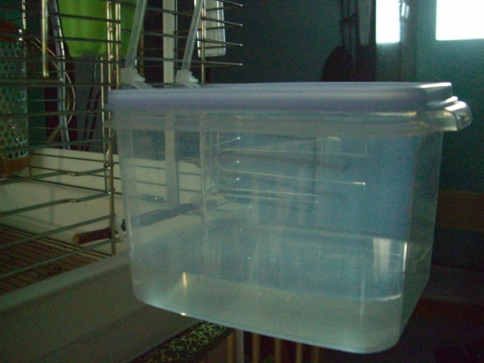 タッパバスの中で完結して欲しかった水浴びなんですが、あまりにも気に入って何度もやらかしたらしく、床もケージの底も水びだしになってました。(^_^)コレってどうなの??