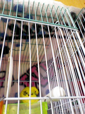 2羽目はみどりという顔付きがもう自分にとってはタイプのイケメンだと思われるオス。ちょっと気が強くて臆病でよく飛ぶカーテンの上に止まるの多過ぎる←