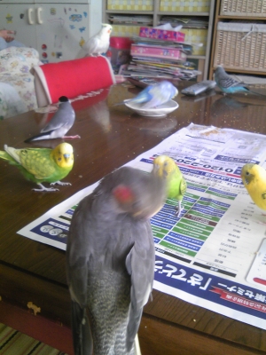 2011年8月26日、一羽目の珠理奈を迎えてから一年半程で、玲奈男・優貴奈・瑠璃奈・杏奈・満里奈・純奈・芹奈・愛美奈、そしてこの18日に向かえた恵美奈をむかえ10羽の大家族になりました。にぎやかで毎日私に笑顔と喜びをくれて、部屋を汚してくれてます。皆さんは何羽と暮らしてますか?