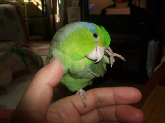 小さい鳥さんのオモチャを買ってあげても、遠くから見ているだけでなかなか近寄ってきません。