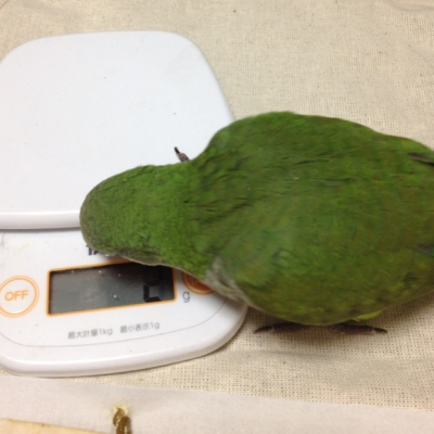 差し餌の時に体重を毎回量るのですが、今日はミントさん偶然ですが自分でスイッチON!