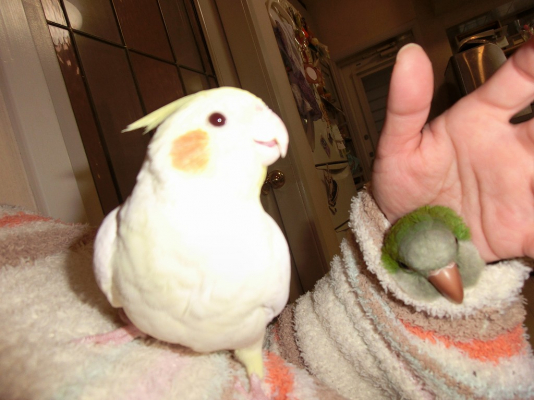 今日 指を噛み付くオカメインコのぴぃちゃんから