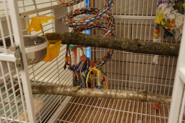 どうやってケージの外にある蝶ねじを回すのか不思議でたまらないんですがお陰でいつも止まり木がぐらぐら。