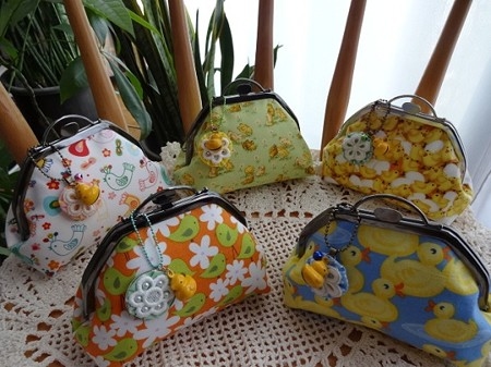 ひよこの鈴付きがま口ポーチ