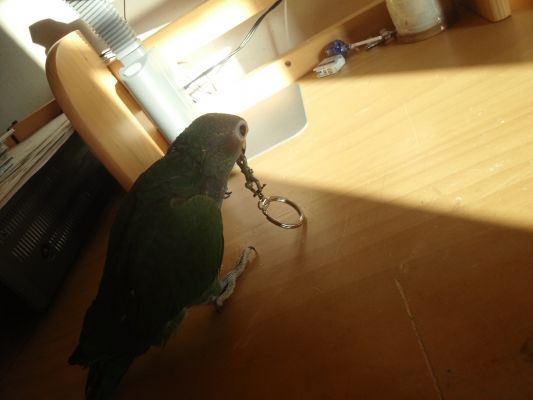 出してるときはとまれる所があればそこでじっとしてるのが半分、バッサバッサ飛んだりおもちゃで遊んだりかまってもらいたがるのが半分って感じです