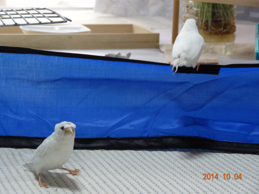妹んちの十姉妹たちを見て大ハシャギで、うち1羽は