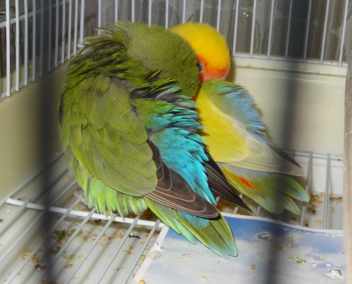 私が昼寝してる間は鳥たちも2羽づつくっついたまま静かにしてました。