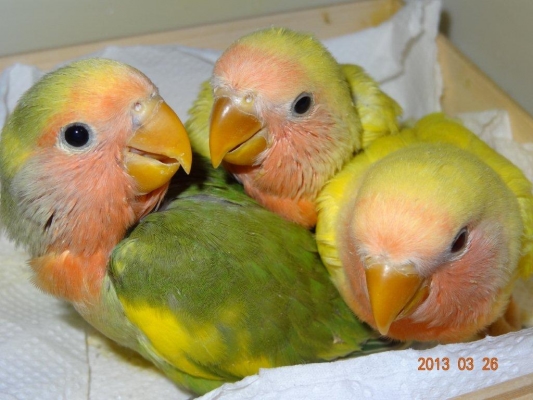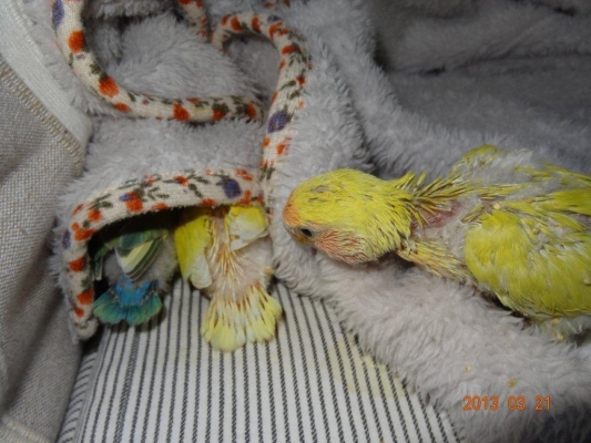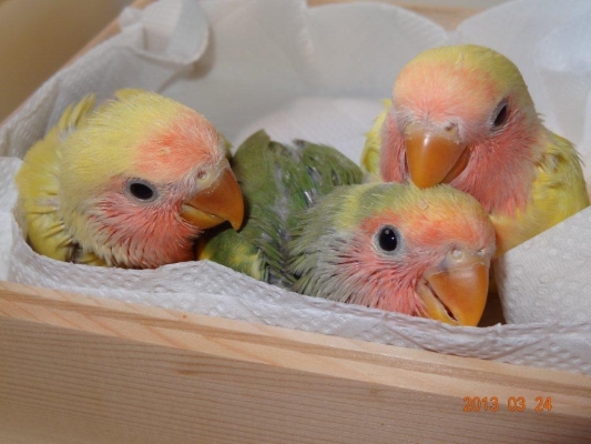 私は今、別トピでも書いていますが、カナリア雛を育てています。2時間置きの挿し餌ですが、一生懸命食べてくるのが可愛くて、可愛くて!!あと、十姉妹の雛も6羽孵化してて、それから、文鳥も孵化間近です。みんな手乗りにするので、しばらくは子育てに頑張らなきゃ!です。