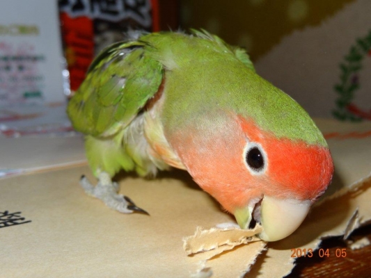 コザクラペアが巣箱にこもってから約1ケ月半の今日、