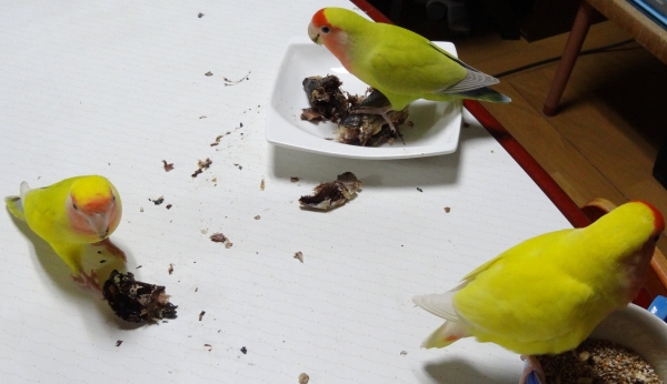 留守をしたので放鳥時間が減って鳥たちは不機嫌