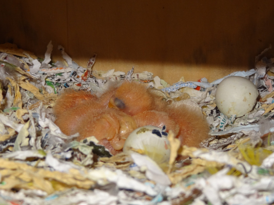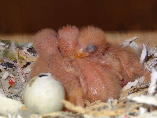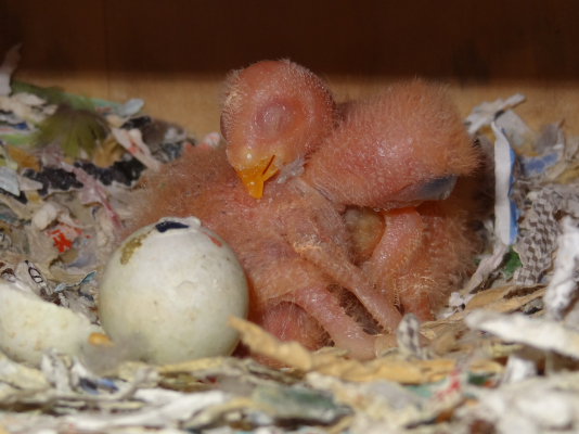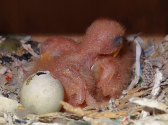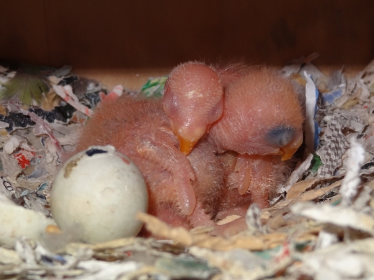 コザクラペアが巣箱にこもってから約1ケ月半の今日、