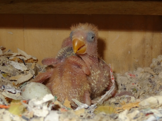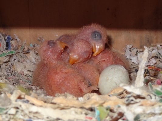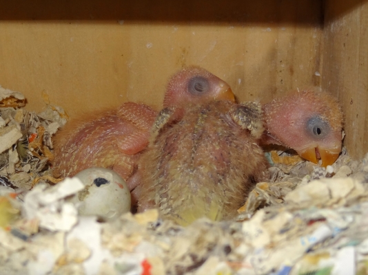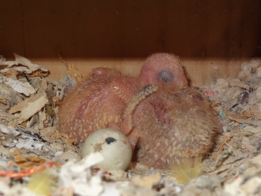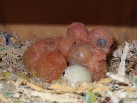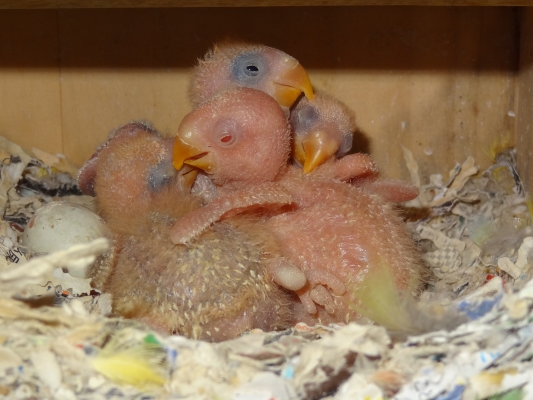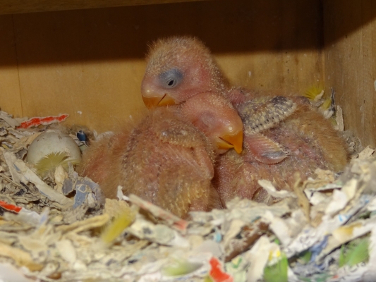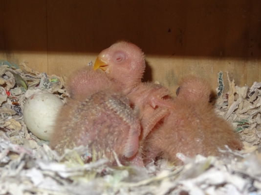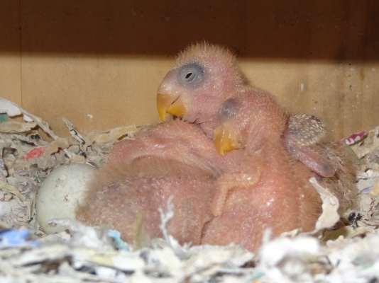 コザクラペアが巣箱にこもってから約1ケ月半の今日、
