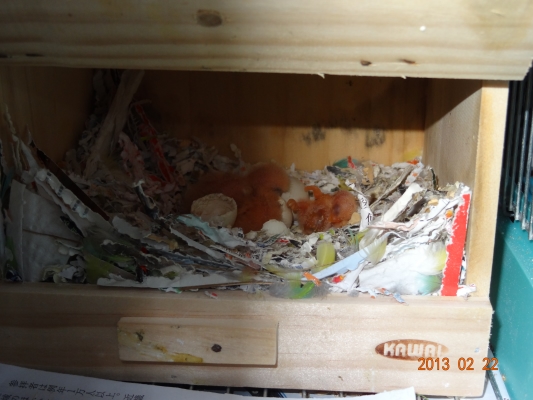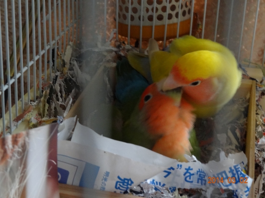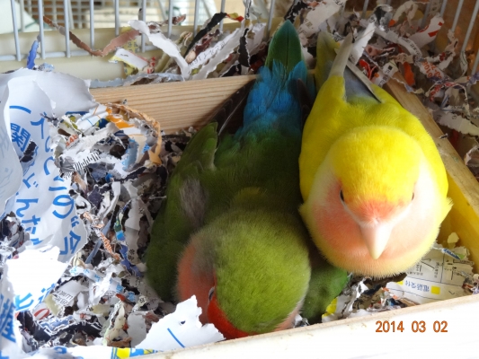 コザクラペアが巣箱にこもってから約1ケ月半の今日、