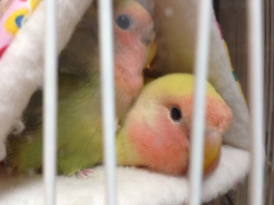 コザクラペアが巣箱にこもってから約1ケ月半の今日、