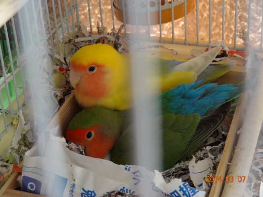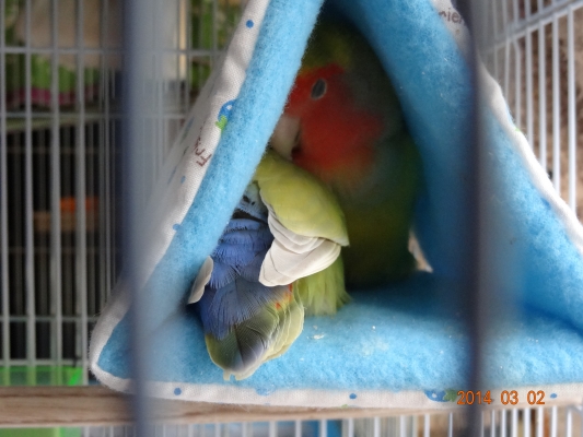 コザクラペアが巣箱にこもってから約1ケ月半の今日、
