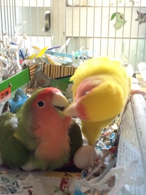 コザクラペアが巣箱にこもってから約1ケ月半の今日、
