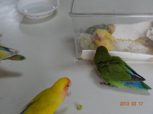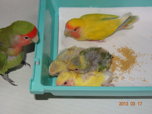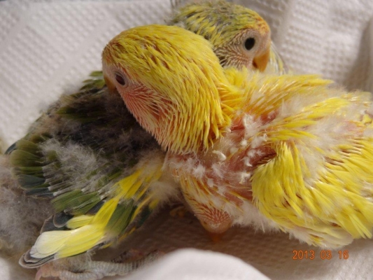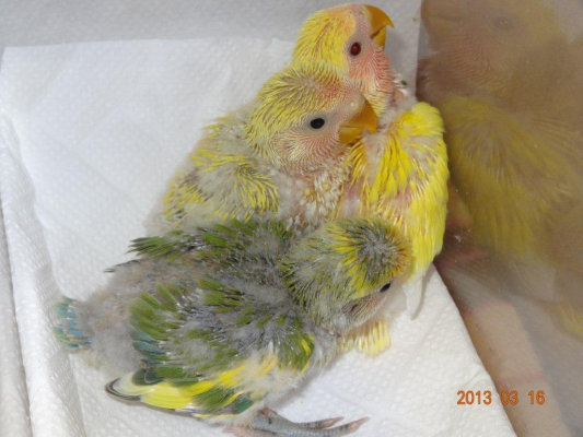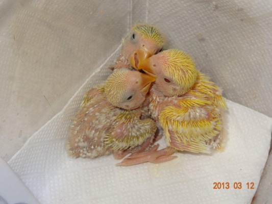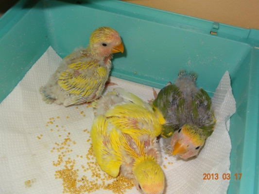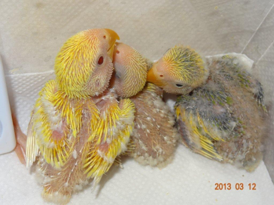 一羽目の雛ちゃんは、多分すぅちゃんと同じ羽色だと思いますが、成長して頭、頬、腰にどんな色がでてくるのかが楽しみですね!(o^―^o)ニコ