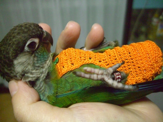 嫌がる子が多いので雛のうちから着せておいたほうがいいですよ。