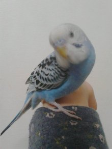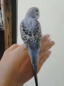 色は青、中雛で羽が切られていますがよく飛ぶそうです。