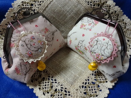 チャームにヒヨコの鈴付きがま口ポーチ & セキセイインコのポストカード