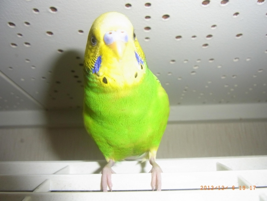 色:体は黄緑色で羽に黒の鱗模様があり、頭は黄色です。