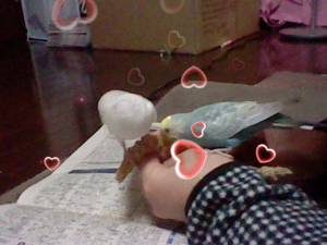 たまにピッポちゃんと遊んで、ピッポちゃんにさしえあげてます!(*´ω`*)(鳥と人間がややこしいですね笑)
