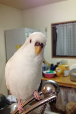 真っ白でキレイですね〜。私もセキセイインコ1羽飼いです。