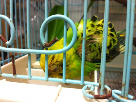 はじめみたときより羽がはげていたし、そろそろ治さないと悪化すと思い連れてきました。