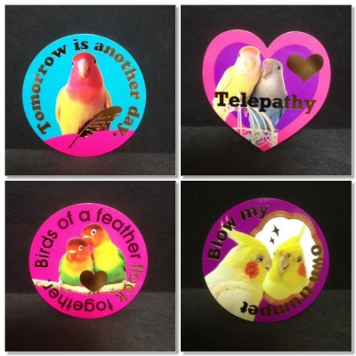 コザクラインコ、ボタンインコ、オカメインコのステッカーが4種、入荷しました。